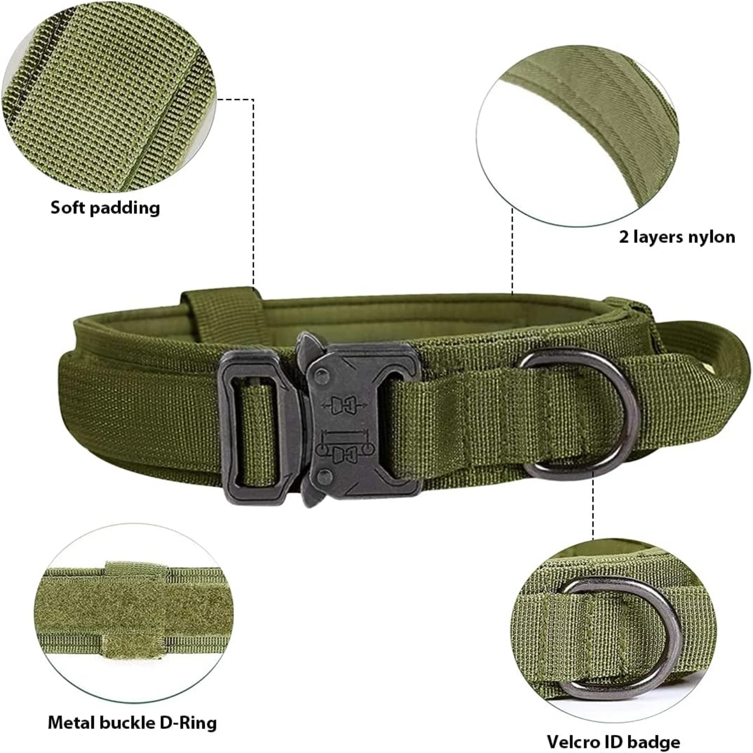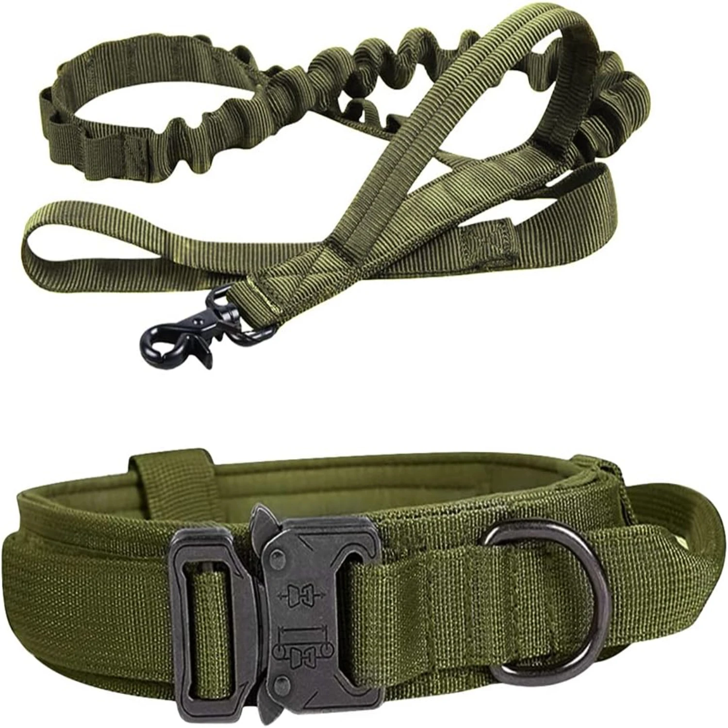 1. The Durable Tactical Military Dog Collar and Leash Set is perfect for large breeds who need extra control during training. The adjustable nylon collar features a heavy-duty metal buckle and a convenient handle for easy handling.
